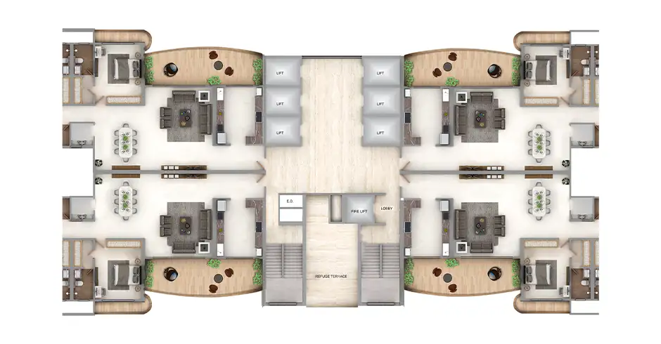 A: Mohan Prestige exclusively offers meticulously designed 4 Bed Deck Residences and a combination option of (4+4) BHK Jodi Units.